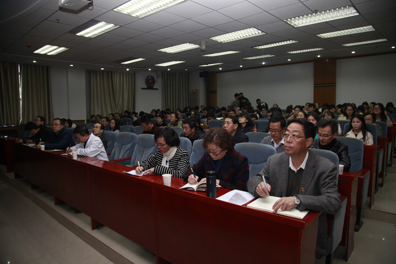 崔森书记以《自觉增强教育发展自信 强化教育强国时代担当》为题,从了解全国教育大会的概况;充分认识教育工作成效,不断增强教育发展自信;明确教育工作至高地位,担当人民教师时代责任;领会新时代教育工作总体要求;认真贯彻教育改革发展新理念新思想新观点;切实领会新时代教育发展的总体部署;坚决落实教育改革发展的重点任务和扎实贯彻落实全国教育大会精神等八个方面宣讲全国教育大会精神。对怎样务实精准的顶层设计,扎实推进教育发展;如何提高高等教育内涵建设,增强国家核心竞争力;教育的地位与高校的职能,教师的贡献与教师的责任;教育的根本任务目标;教育改革发展的“九个坚持”和“六个下功夫”等内容作了详细解读,宣讲列举了大量国内省内教育发展数据,深入浅出,通俗易懂,使广大师生对全国教育大会精神有了更深的理解,受益匪浅。